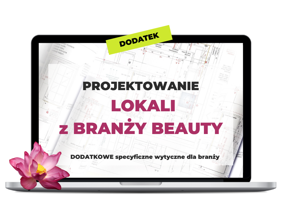 🔎 Dodatek „Projektowanie lokali beauty” został stworzony jako specjalistyczne rozszerzenie kursu głównego. Bazuje na jego treści i nie zawiera podstawowych informacji, takich jak przepisy ogólne, procedury administracyjne, czy projektowanie zgodne z normami.
