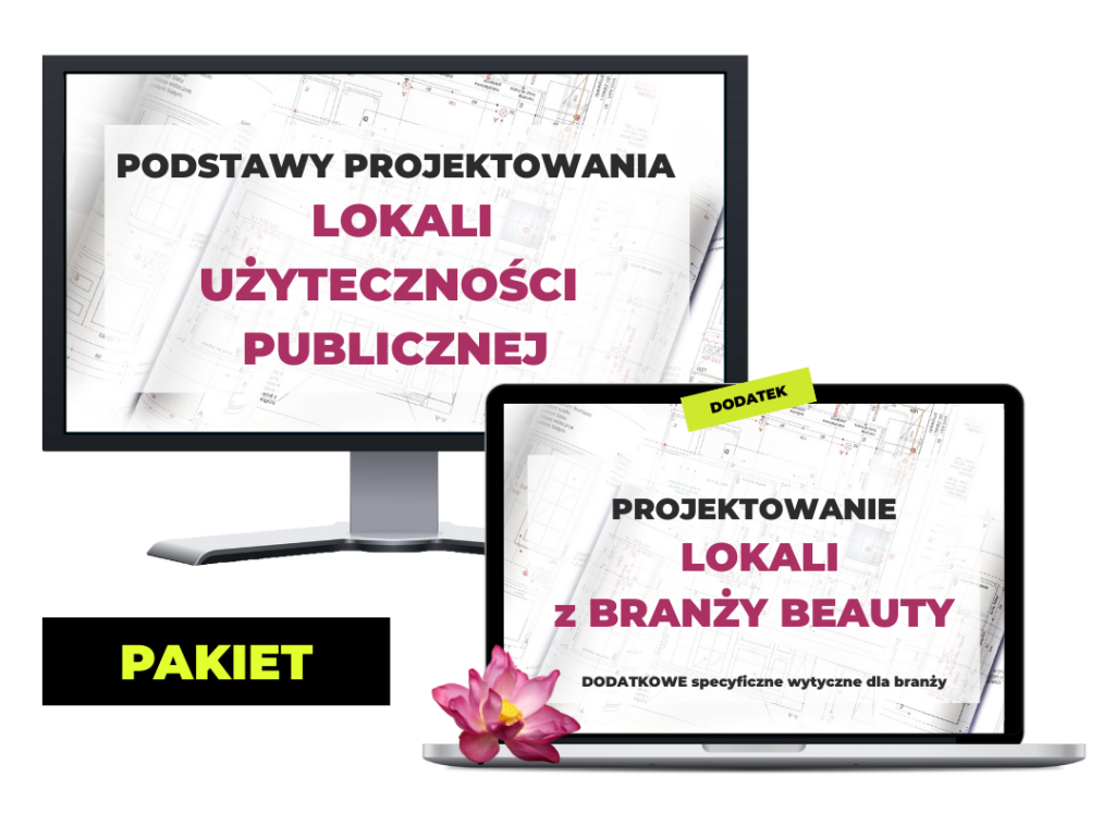 🔎 Dodatek „Projektowanie lokali beauty” został stworzony jako specjalistyczne rozszerzenie kursu głównego. Bazuje na jego treści i nie zawiera podstawowych informacji, takich jak przepisy ogólne, procedury administracyjne, czy projektowanie zgodne z normami.