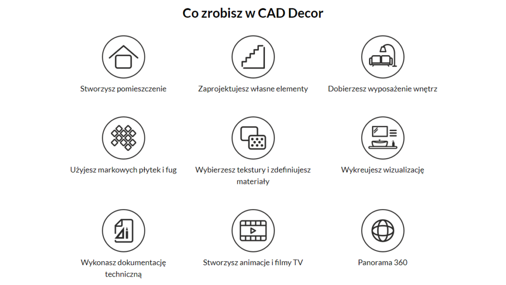 CAD Decor 4.X to praktyczny program do projektowania wnętrz, zwłaszcza tych z wykorzystaniem płytek ceramicznych. Wszystko dzięki Modułowi Projektowania Płytek Ceramicznych oraz Edytorowi Baz Płytek. W programie wykonasz również dokumentację techniczną oraz podstawowy rendering (z możliwością rozszerzenia programu o Moduł Render PRO, w celu uzyskania jeszcze bardziej fotorealistycznej jakości wizualizacji). Idealne narzędzie zarówno dla profesjonalistów jak i osób dopiero wchodzących w zawód projektanta i architekta wnętrz. Program zawiera: